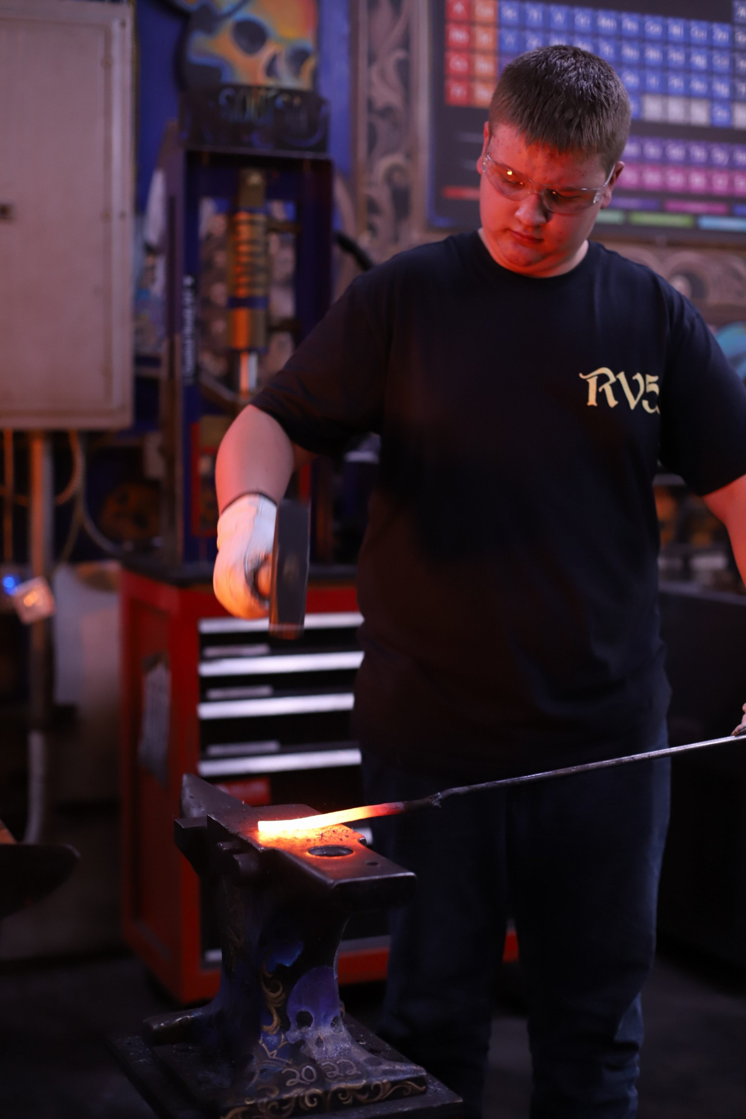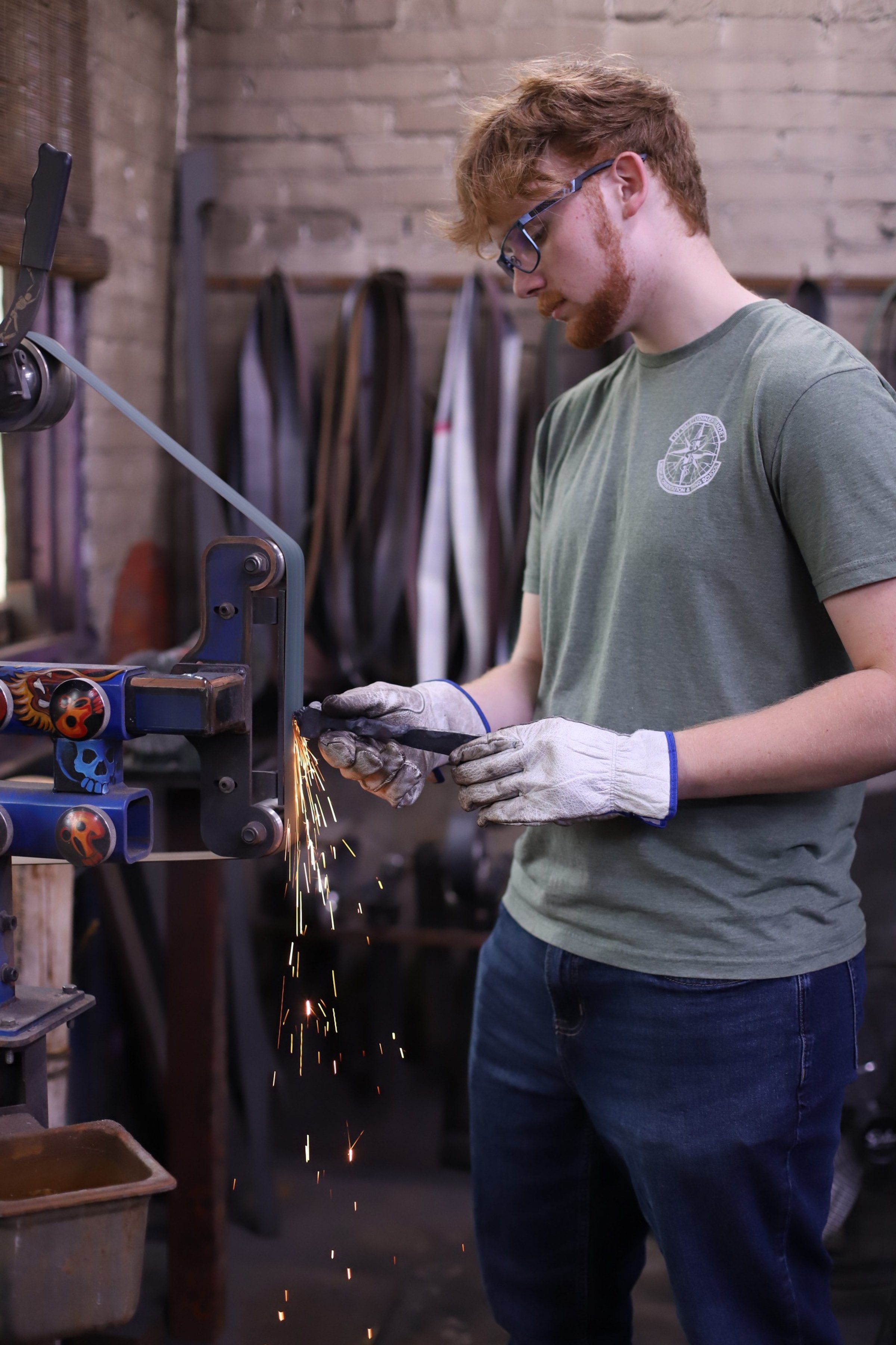 Fun class with Luke today! He made a beautiful Railroad Spike Knife.