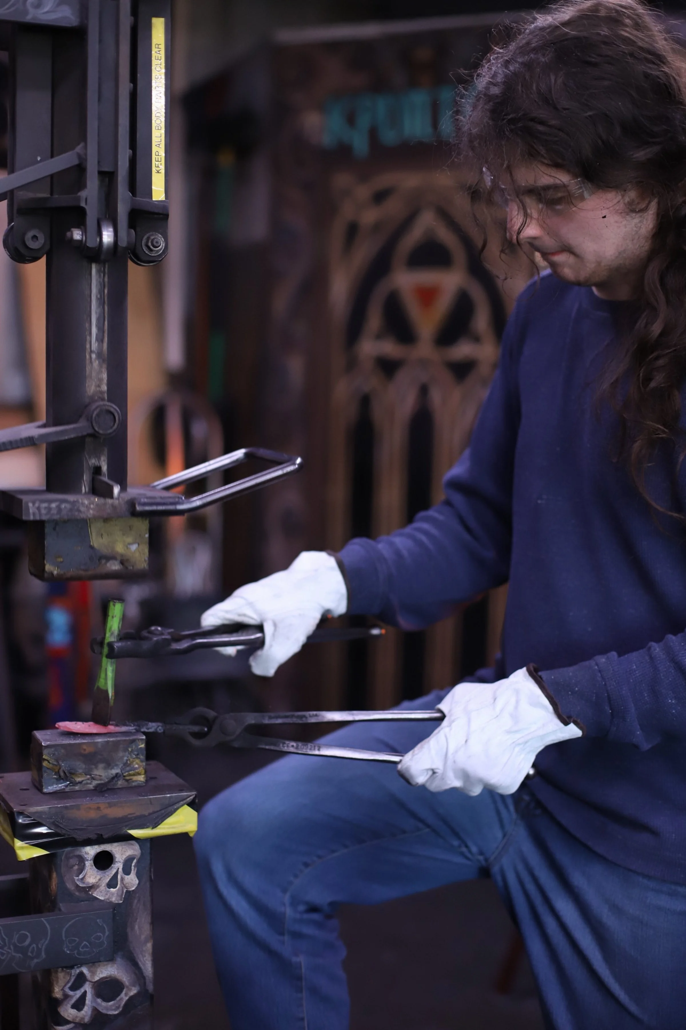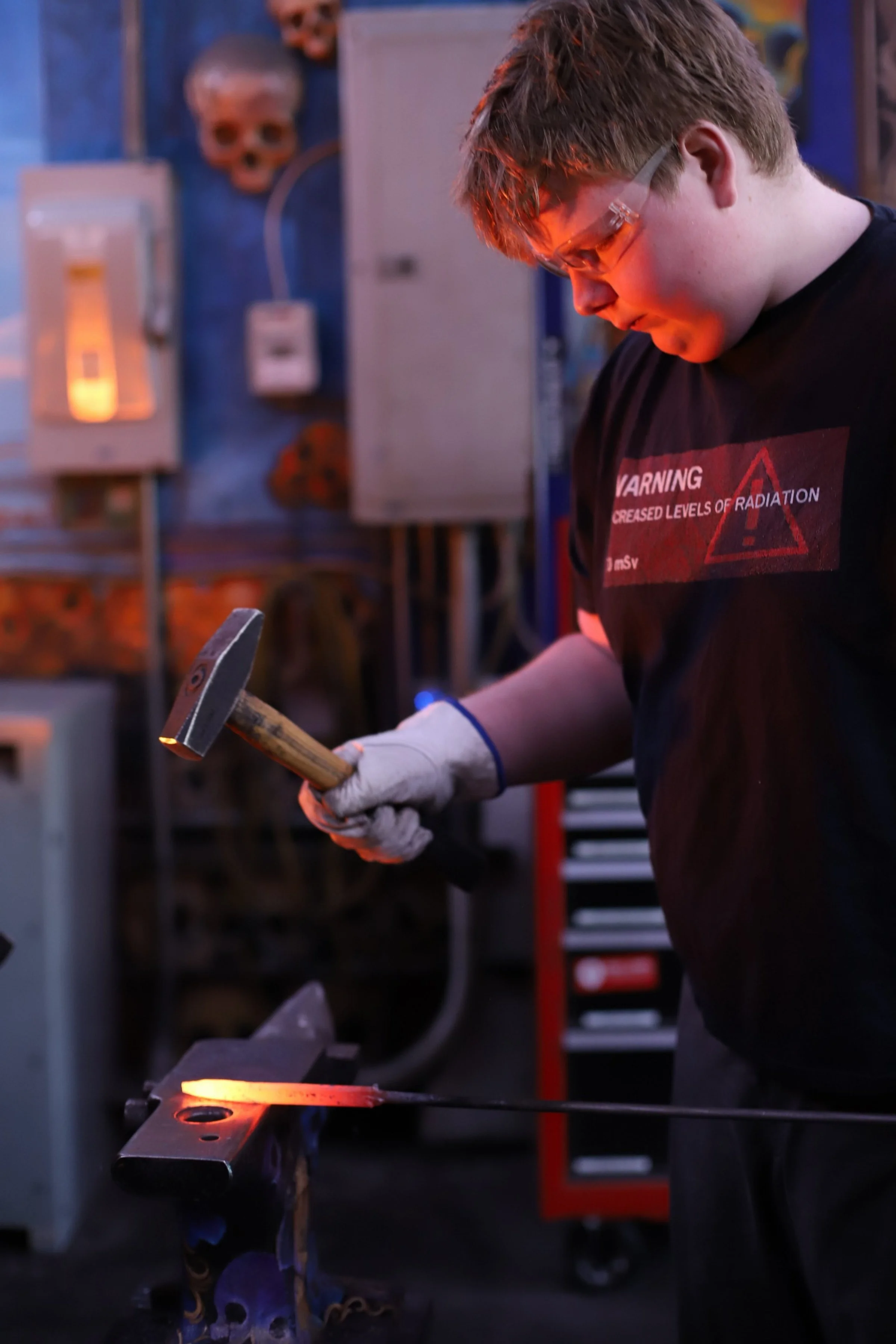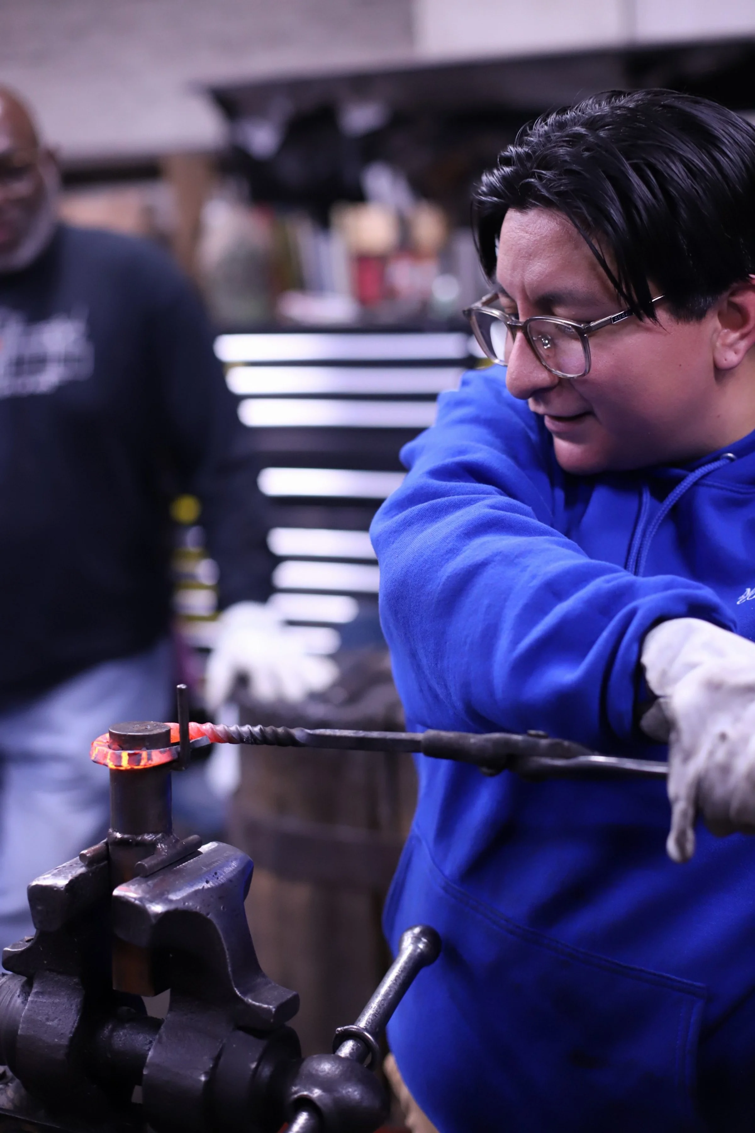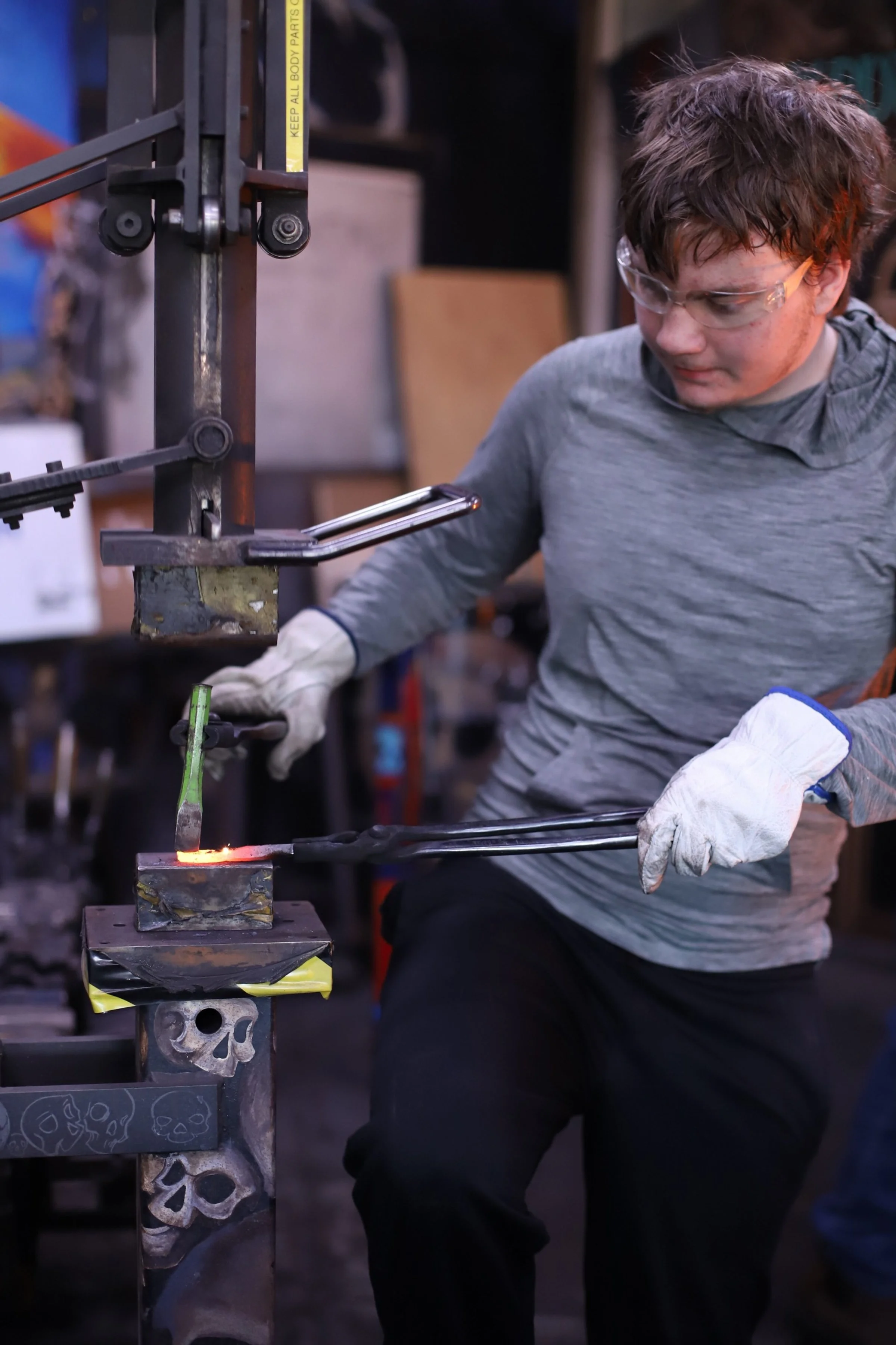 Fantastic morning in the forge today! Drew finished his Parang Machete, while his daughter finished her first Billet Knife. They brought a family friend, Haley, too so she could make a Railroad Spike Knife