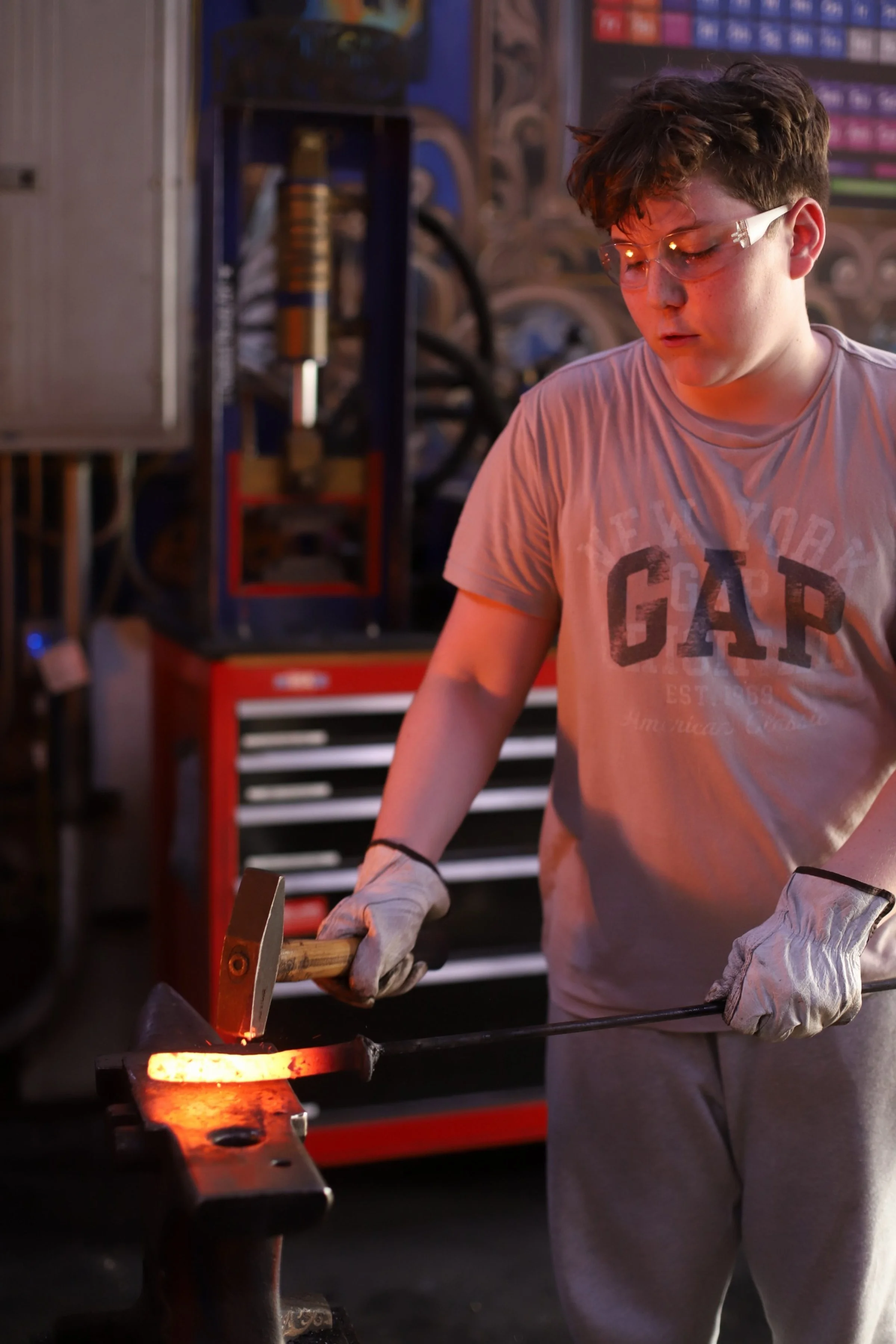 Very fun Steel Flower class with these 4! They did great with their first time plasma cutting, cold hammering steel, and welding!