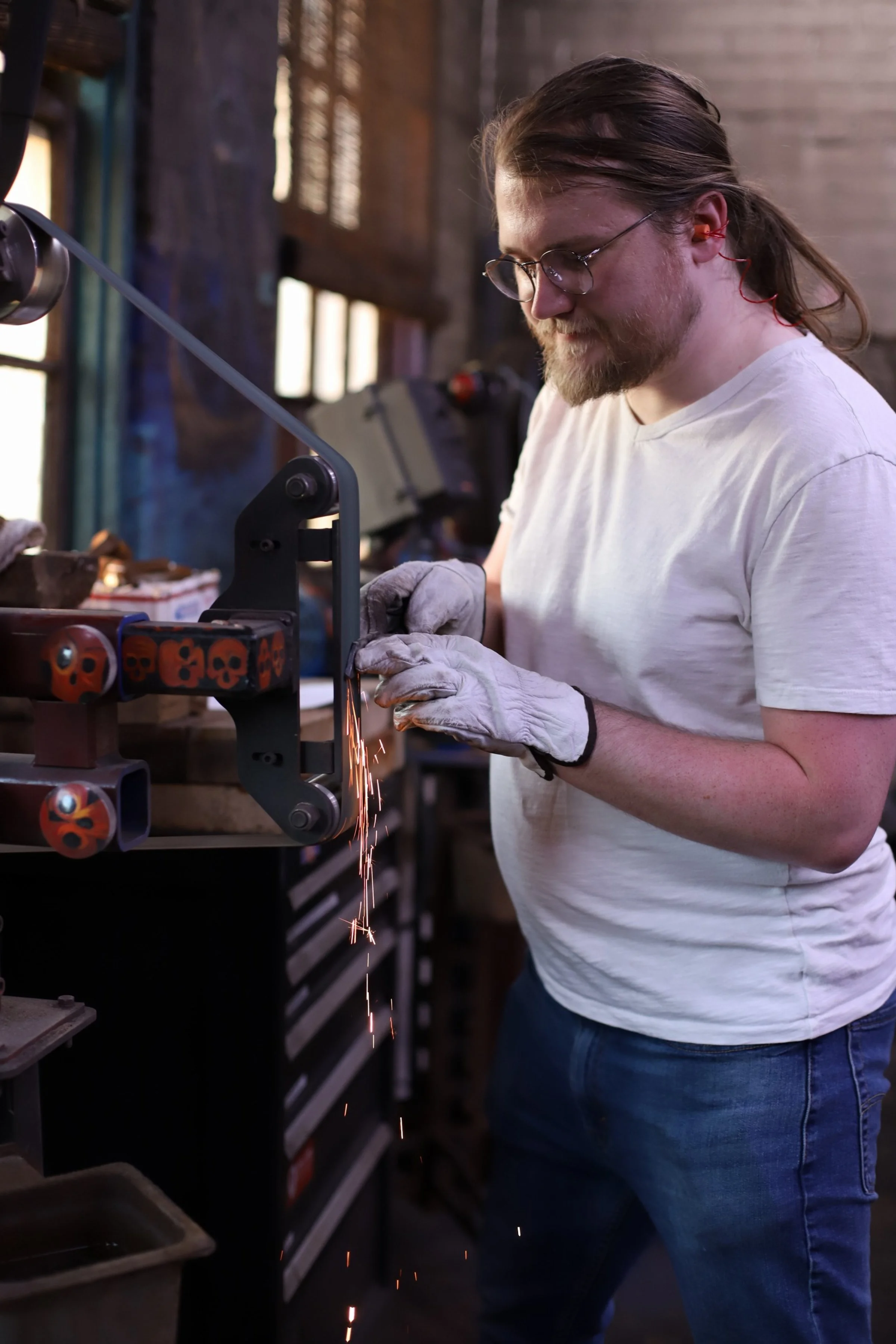 Great start to the day with Shawn and his friend Travis, who both came from Ohio to make Railroad Spike Knives! Beautiful knives, and the perfect examples of long & stabby vs short & slicey.