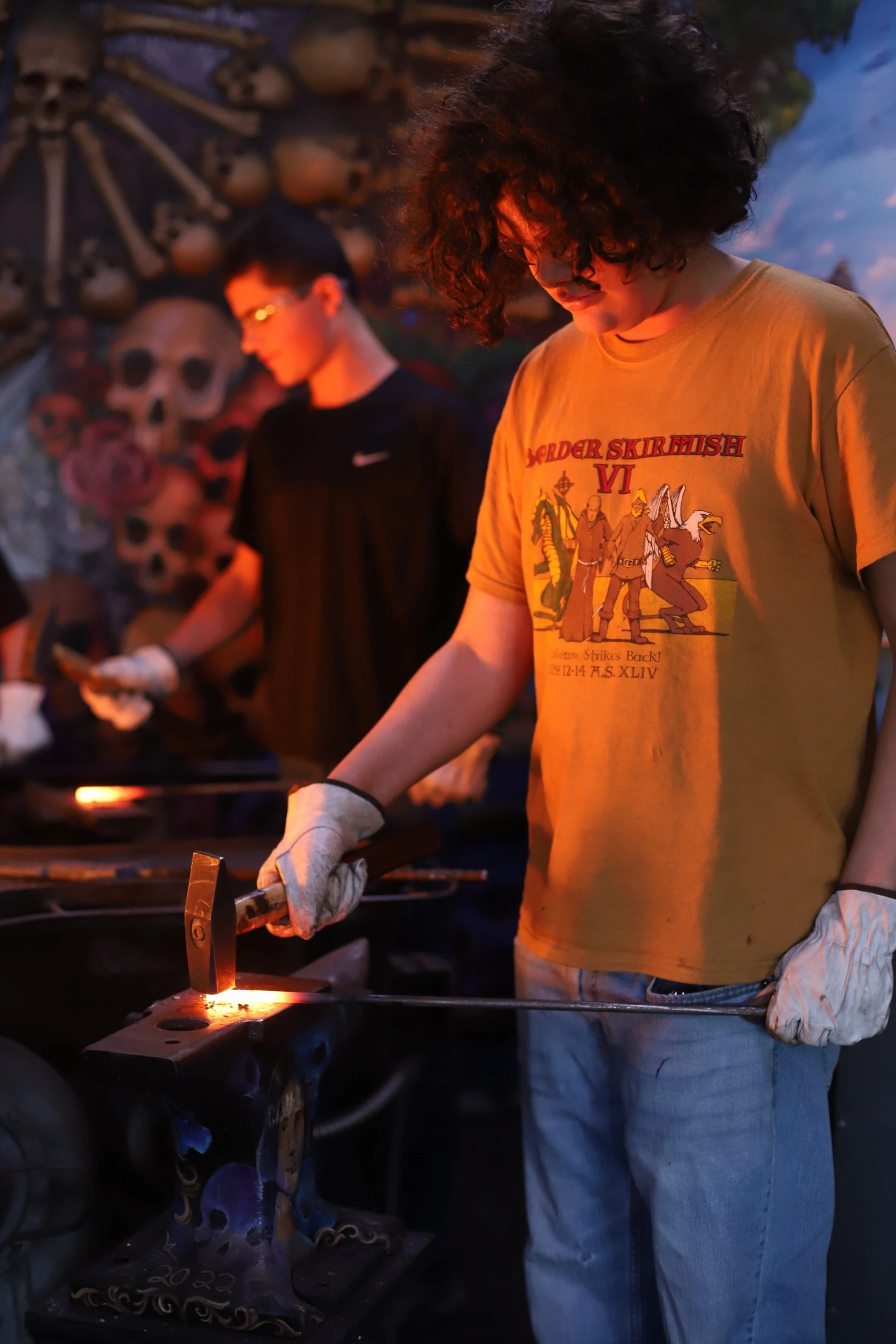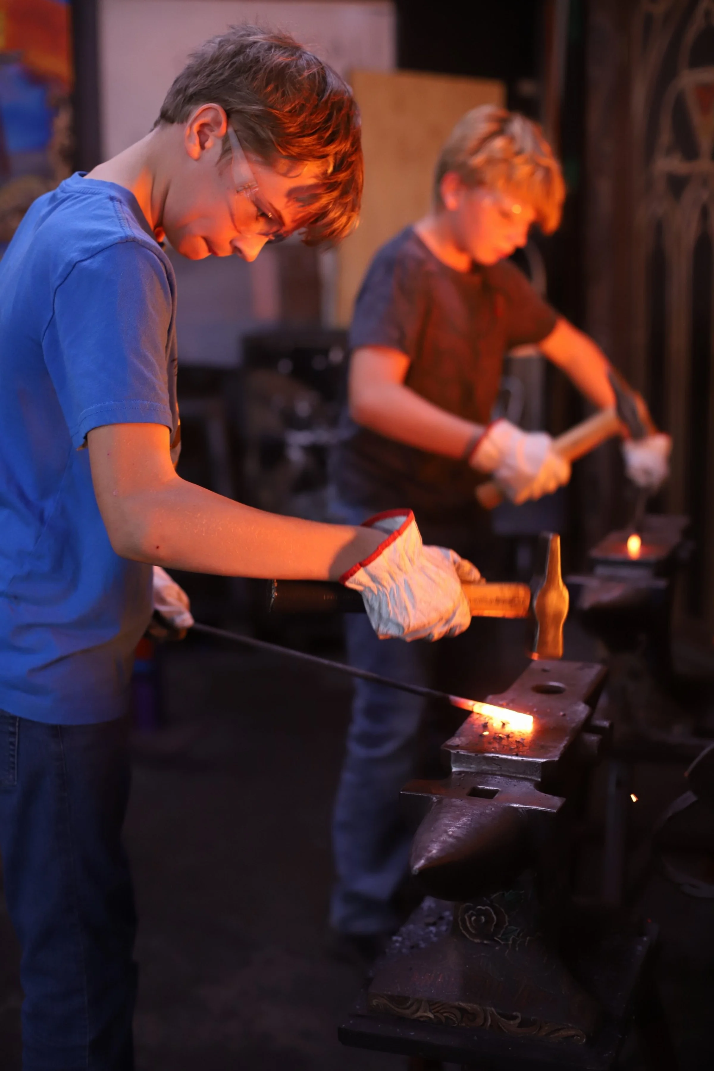 Awesome morning with Level 1 Homeschoolers! We added on to the skills they learned last month, tapering and pigtails. They finished their tapers in a fraction of the time as last time, plus learned how to do an upset, use the treadle hammer with punches and chisels, and free form shape steel. Great job! Next time, its leaves...