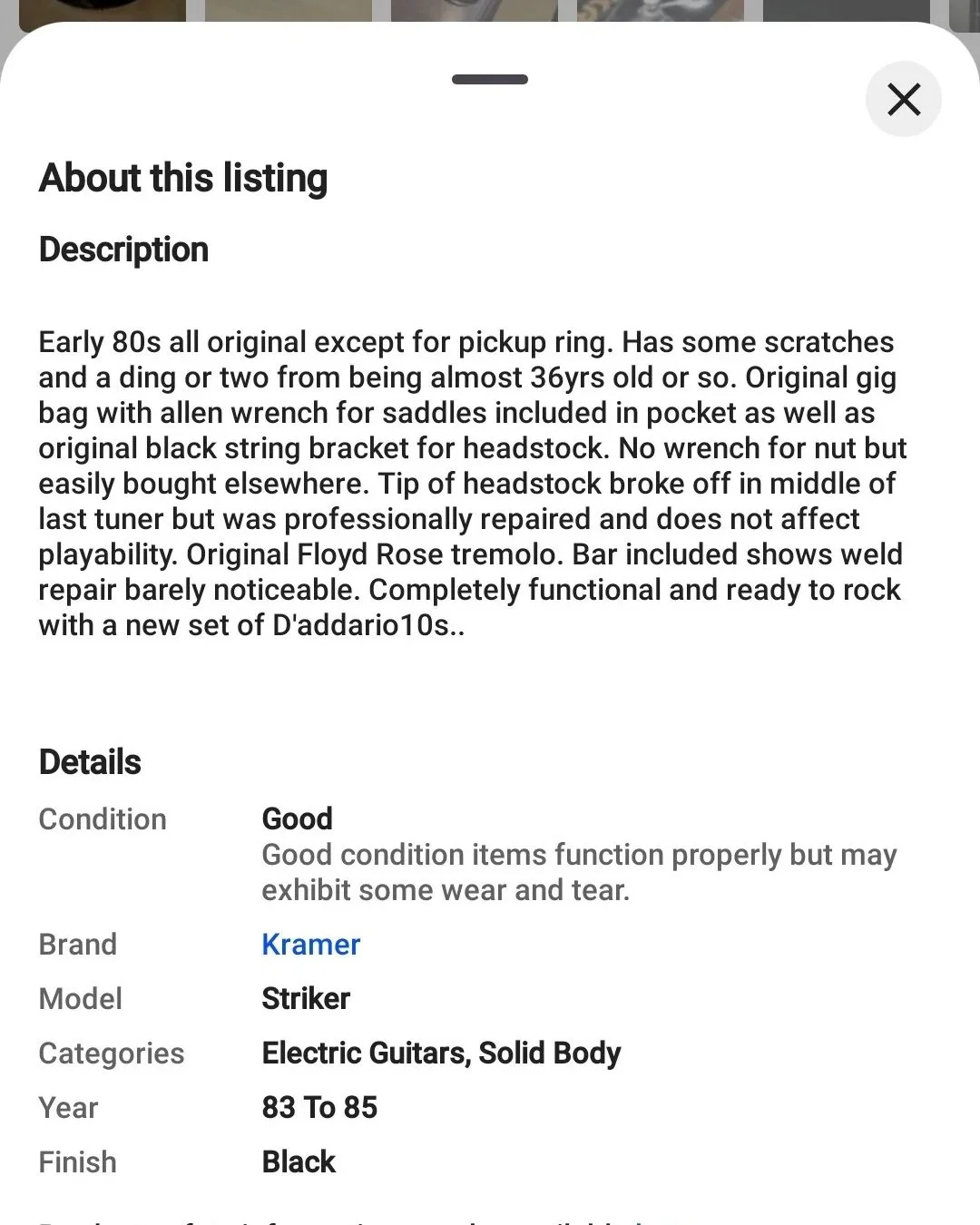 KRAMER STRIKER$350Please email, text, or call me if interested.info@combatreadyart.com or 269-254-2335 View fullsize View fullsize View fullsize View fullsize View fullsize View fullsize