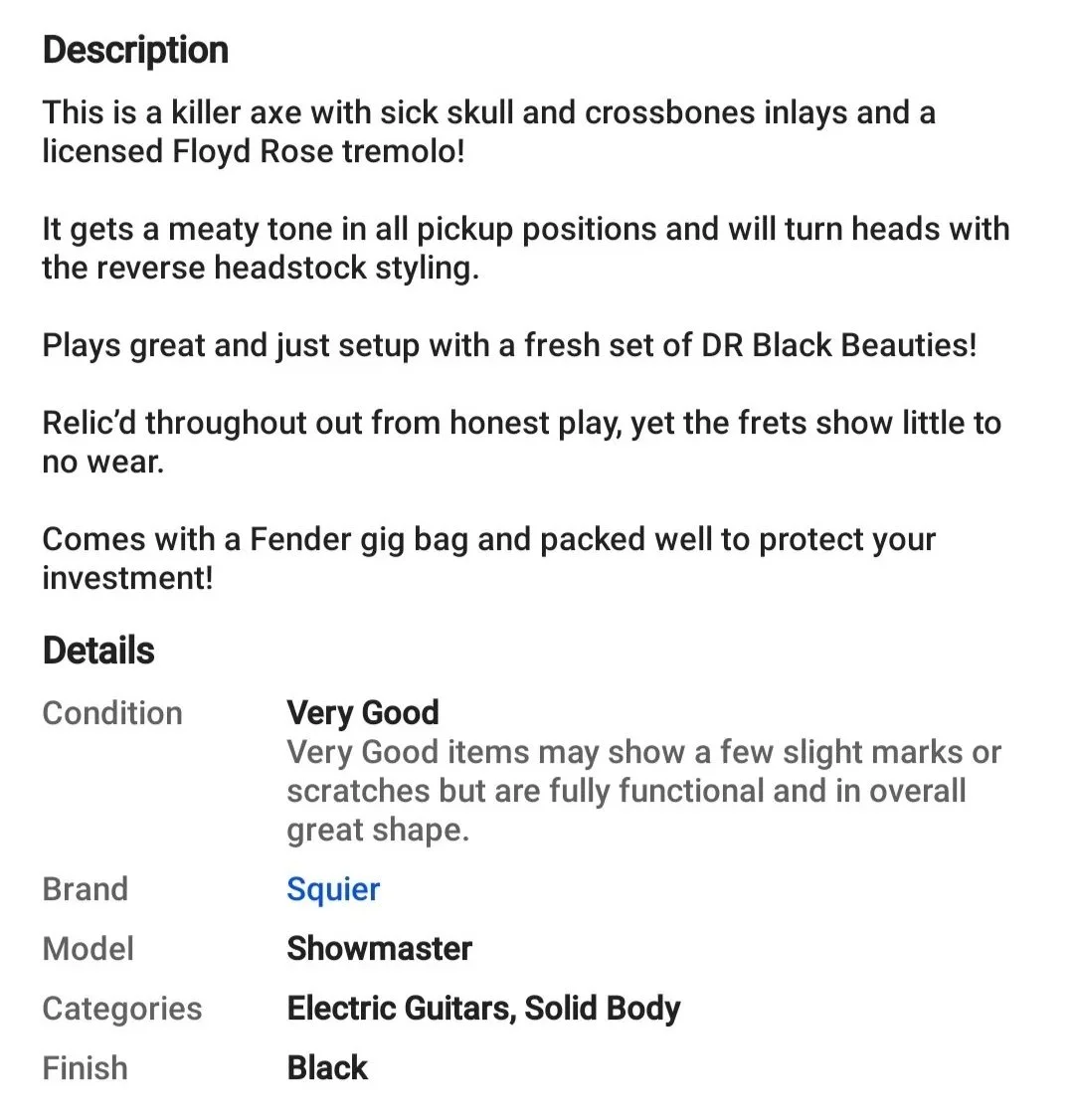 Fender Squire Show Master Skull + Bones, $350Please email, text, or call me if interested.info@combatreadyart.com or 269-254-2335 View fullsize View fullsize View fullsize View fullsize View fullsize View fullsize View fullsize View fullsize View fullsize View fullsize View fullsize
